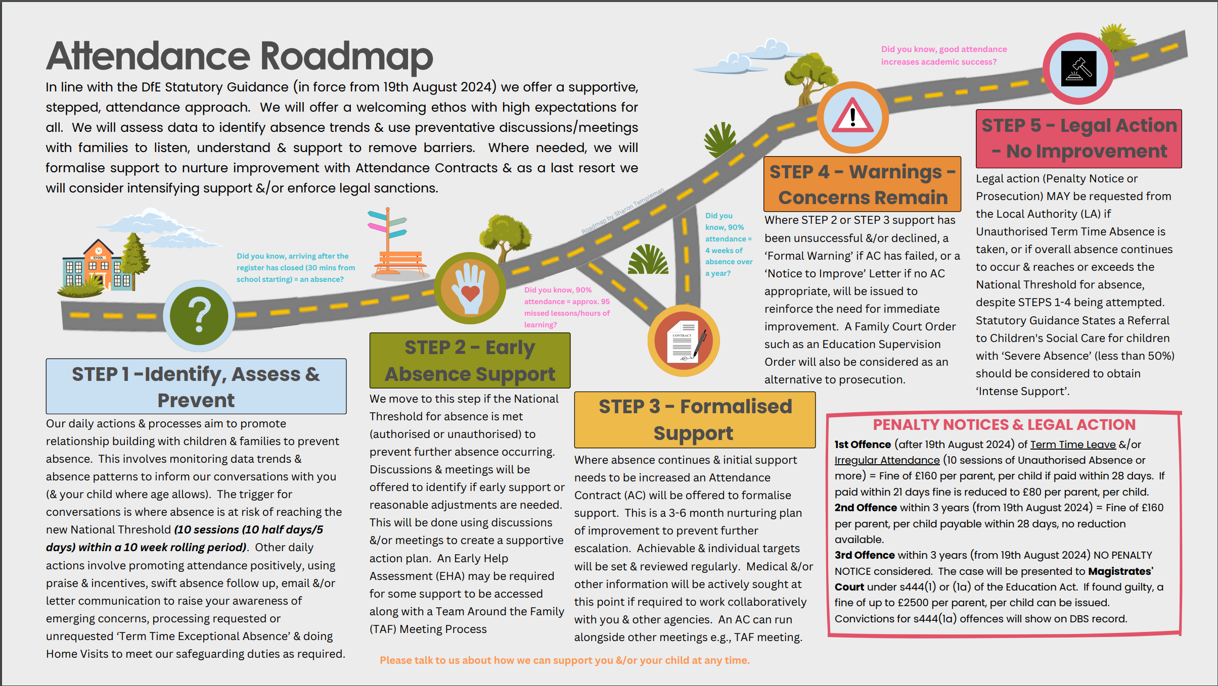 In August 2024, there was a change to the Department for Education guidance and statutory expectations around school attendance. We wrote to all our families at the start of term in September 2024, to outline this guidance and change. The letter is available below.